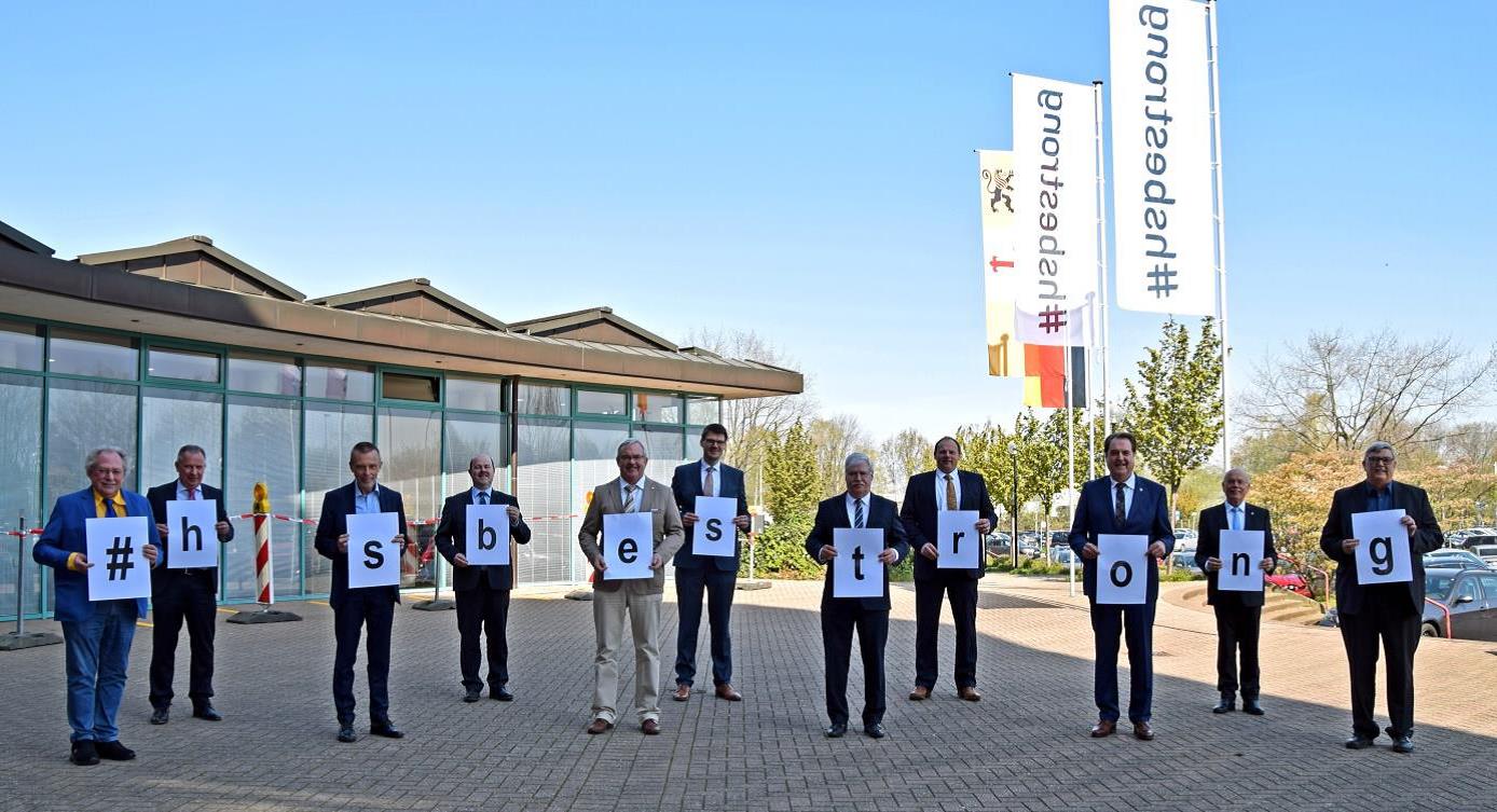 Am gestrigen Mittwoch traf sich unser Landrat Stephan Pusch mit den zehn Bürgermeistern, um die aktuell anstehenden Themen in der Corona-Krise zu besprechen. Bei dieser Gelegenheit wünschten sie den Bürgerinnen und Bürgern im Kreis Heinsberg trotz der momentan schwierigen Umstände ein frohes Osterfest und grüßten vor dem Kreishaus mit einem #hsbestrong.